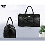 Fur Jaden Textured Leatherette Spacious Weekender Travel Duffle Bag For Men & Women - Black, 35 L