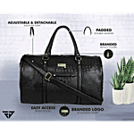 No Question askedFur Jaden Textured Leatherette Spacious Weekender Travel Duffle Bag For Men & Women - Black