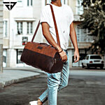 Fur Jaden Tan Leatherette Gym & Travel Duffle Weekender Bag For Men & Women - Brown, 25 L
