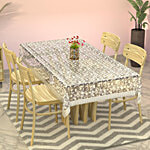 JBG Home Store PVC Rectangular 6 Seater Dining Table Cover - Stone Silver Lace, Transparent, 1 pc