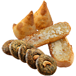 Qmin Hara Bhara Kebab 150 g (5 pcs) + Aloo Samosa 160 g (2 pcs) + Cheese Garlic Bread 150 g (2 pcs)