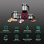 Zenova 550 Watt 4 Jars Mixer Grinder (18000 RPM, Hands Free Operation, Red Wine), 1 Unit