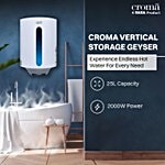 Croma AV5117 25 Litres 5 Star Vertical Storage Geyser with Temperature Control Knob (White), 1 Unit