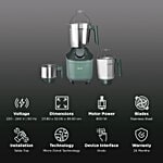 800 Watt 3 Jars Mixer Grinder MicroGrind Technology - Green