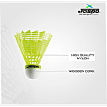 Jaspo Nylon Shuttlecock With Wooden Base - Neon Yellow, 6 pcs