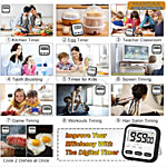 Mansaa 3-in-1 Digital Kitchen Timer & Clock, Large Magnetic Display - Black