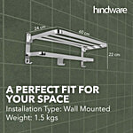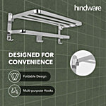 Hindware Folding Towel Rack - 304 Grade Stainless Steel, Space Saving Wall Mount, 1 pc