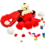 Desidiya Valentines Day Gift Box Combo - Artificial Roses Bouquet & Teddy Bear, Red