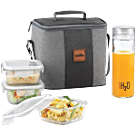 Cello Glassy Square Lunch Box Set & 1 Water Bottle