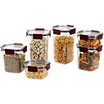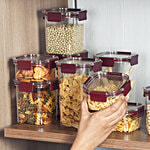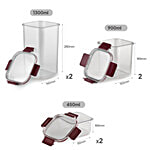Cello Stack Lock Fridge Storage Container Set - Maroon, 6 pcs ((900ml + 450ml + 1300ml) x 2)
