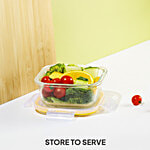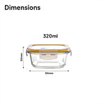 Cello Fit & Fresh Microwave Safe Fridge Glass Square Lunch Box Container - Clear, 320 ml