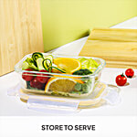 Cello Fit & Fresh Microwave Safe Fridge Glass Square Lunch Box Container - Clear, 370 ml