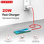 Bestor 20W Fast Charging USB Type C Cable - 1 m, Red & White, 1 Unit