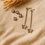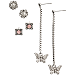 Jewelz Butterfly Charm Drop Earrings With Pearl & Pink Stud Combo, 3 Pairs