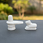 Svasti White Marble Shivling With Nandi, 2 pcs