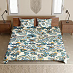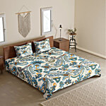 Aria Blue Scroll Microfibre 115 GSM Bedsheet With Pillow Covers, 1 Set
