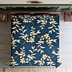 Aria Blue Leaves Microfibre 115 GSM Double Bedsheet With Pillow Covers, 1 Set
