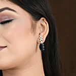 No Question askedVoylla Sparkling Elegance Glam American Diamond Drop Earrings - Blue