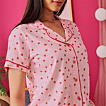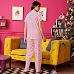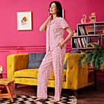 Clovia Strawberry Print Button Down Cotton Night Suit - Baby Pink, 1 Set (Size - L)