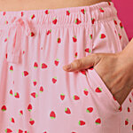 Clovia Strawberry Print Button Down Cotton Night Suit - Baby Pink