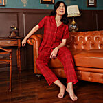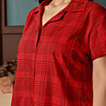 Clovia Classic Checks Button Down Rayon Night Suit - Red, 1 Set (Size - XL)