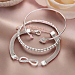 Aatmana Silver Plated CZ Studded Infinity & Heart Shaped Stacking Bracelet, 3 pcs (Adjustable)