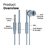 Ambrane Stringz 38 Wired Headphones With Mic, Space Grey