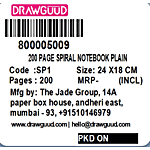 No Question askedDrawguud DN009 Pulse Unruled 200 Pages Spiral Notebook Plain - 24 x 18 cm