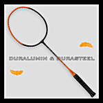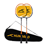 Hundred Powertek 100 Badminton Racquets With Full Cover - Black & Orange, 2 pcs