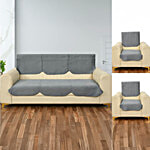 JBG Home Store Velvet Solid Quilted Sofa Covers - Grey, 1 Set (3 + 1 + 1 Seater)