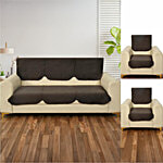 JBG Home Store Velvet Solid Quilted Sofa Covers - Brown, 1 Set (3 + 1 + 1 Seater)