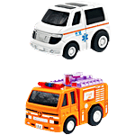 Joy Junction Mini Racer High Speed Pullback Diecast Ambulance & Fire-Truck Toy, 2 pcs