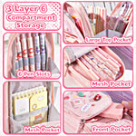 No Question askedSillyme 6 Layer 3 Compartments Pencil Case - Large, Pink