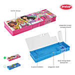 Pratap Barbie Print Mag Lock Dual Side Magnetic Pencil Box With Sharpener - Pink, 1 pc