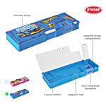 No Question askedPratap Hot Wheel Print Mag Lock Dual Side Magnetic Pencil Box With Sharpener - Blue