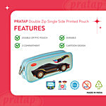 Pratap Hot Wheel Print Double Zip PVC Pencil Pouch - Blue, 1 pc