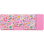 QIPS Unicorn Print Double-Sided Plastic Pencil Box With Push Buttons & Sharpeners, 1 pc