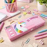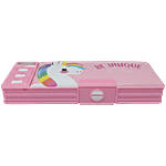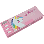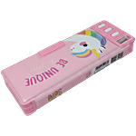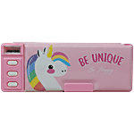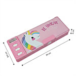 QIPS Unicorn Print Double-Sided Plastic Pencil Box With Push Buttons & Sharpeners