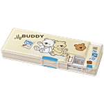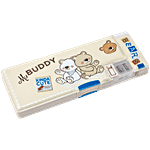 QIPS My Buddy Bear Print Double-Sided Plastic Pencil Box With Sharpeners - Beige