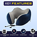 Billebon Premium Cooling Gel Memory Foam Neck Pillow For Travel - Navy Blue, 1 pc