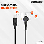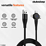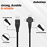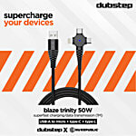 Dubstep Blaze Trinity 50W USB A To Micro & Type C & L Charging Cable - 1 Metre, Black, 1 Unit