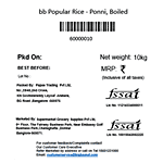Manufactured by : Bangalore Venkata Sai Agro Industries Sy No 647/2, Chikalparvi Road, Manvi, Raichur- 584123, Karnataka Fssai Lic No11213324000324 | Kolkata ASSHIRVAD ENTRPRISE 16, PTR Siding, Coal Depot Shalimar, Howrah - 711102 Fssai Lic No12815008001814 | Chennai Sri Krishna Modern Rice Mill At Andharpalayam, Gengrampalayam (post), Puducherry, 605108 Fssai Lic No13515001000522 | Patna M/S ASG VISION B-295, MITRA MONDAL COLONY , SAKET VIHAR , PATNA - 800002 Fssai Lic No10416000000798 | Ahmedabad Parshva Foods , SR No -655/8/2, Opp Kumar Prithvi, Behind Shreeji Lawns, Bibwewadi, Pune-37 Fssai Lic No11517035000559 | Mumbai Shree Jayraj Food A-1, Punit Industrial premises Co-op soc Ltd, Thane Belapur road, turbhe, navi Mumbai- 400705 Fssai Lic No11515016000348 | Mumbai HRL Food Pvt Ltd, 2692, Gali pattey Wali, Naya Bazar, Central ( Delhi) 110006 Fssai Lic No10016011003279 | Pune PARSHVA FOODS , 655/8/2, Ganga Dham Road, Behind Shreeji lawns, Opp. Kumar Prithvi Bldg, Bibwewadi, Pune 411 037. Fssai Lic No11517035000559 | Delhi SHRI JAYRAJ FOODS PVT. LTD KHASRA NO-427/428, LAL DORA, LAND MARK-MOTHER'S PRIDE SCHOOL, VILLAGE ALIPUR, NEW DELHI-110036 Fssai Lic No13317005000307 | Vijayawada-Guntur Super market grocery supplies pvt ltd , Door No:4-88/2, part-b, Asst No:426/RAB Estates, Dhanekula Engineering college Road, Gangoor village, vijayawada (rular), krishna District, Andhrapradesh-521139 Fssai Lic No10117006000306 |