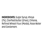 Sugar, Water, Concentrated Milk Solids (5%), Cottage Cheese Solids (2%), Wheat Flour, Clarified Milk Fat (1%), Rose Water, Cardamom