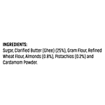 Sugar, Clarified Butter (Ghee), Gram Flour, Refined Wheat Flour, Almonds, Pistachios, Cardamom Powder