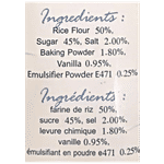 Rice Flour, Sugar, Salt, Baking Powder, Vanilla, Emulsifier Powder(E471)