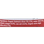 vegetarianOrganic Kalamata Olives, Water, Organic Vinegar, Sea Salt, Organic Extra Virgin Olive Oil.
