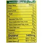 Nutrition per gram/ml: 100g Energy Value: 900 Kcal Protein: 0g Carbohydrate: 0g Sugar: 0g Fat: 100g Saturated Fatty Acids: 24g Poly-Unsaturated Fatty Acids: 34g Mono-Unsaturated Fatty Acids: 42g Trans Fatty Acid: 0g Cholesterol: 0mg Vitamin E: 50 mg Oryzanol: 1400mg Added Vitamin A: 2500 IU* / 750 mcg** Added Vitamin D2: 450 IU* / 11.25 mcg**
