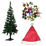 No Question askedChristmas Decorators Combo - Christmas Tree 3 Feet, Assorted Tree Decoration Large & Santa Cap