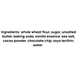 Whole Wheat Flour, Sugar, Unsalted Butter, Baking Soda, Vanilla Essence, Sea Salt, Cocoa Powder, Chocolate Chip, Soya Lecithin, Water.