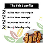 Add this delicious sweet snack to your daily diet. Ideal for work, gym, travel or morning and evening snack maintain & improve overall health and provides essential nutrition with amazing flavor. A great source of Proteins, fibre and full of vitamins and minerals! Deal with hunger like a boss by having a pair of these in your bag always. It is a high protein health bar that boosts memory. It is ideal as a yoga, gym snack that gives energy. Features: It contains no added sugar and is gluten-free. No preservatives. 100 % Vegetarian, Natural and healthy. Lowers cholestrol, Increases bone strength. Weight: 60 g